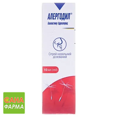 Аллергодил, спрей назал. дозир. 1 мг/мл фл. 10 мл, с навинченным распылителем, №1