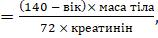 Кліренс креатиніну, що обчислюється відповідно до даного виразу, застосовується виключно до чоловіків (відповідне значення для жінок становить 85 % даного значення) і може бути прирівняний до кліренсу інсуліну для визначення ШКФ (120 мл/хв для дорослих).