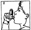 4. Вдихнути якомога глибше, одночасно натиснути на дно балончика до вивільнення 1 (однієї) мірної дози. На декілька секунд затримати дихання, потім вийняти мундштук з рота та повільно видихнути.