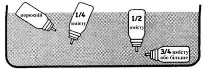- від'єднати від балончика пластмасовий мундштук і помістити балончик у ємність з водою. Вміст аерозольного балончика можна оцінити за його положенням у воді (див. рис. 5).
