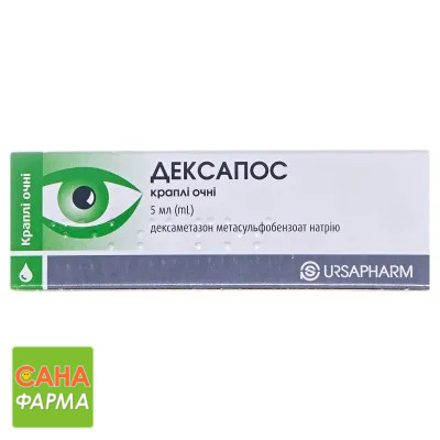 Синтетичний кортикостероїд дексаметазон метасульфобензоат натрію використовують у складі очних крапель завдяки його вираженій протизапальній дії. Ефективність місцевого застосування кортикостероїдів підтверджена при лікуванні запалень та алергічних подразнень переднього сегмента ока. Після хірургічних втручань препарат можна ефективно застосовувати для профілактики та лікування запалень.