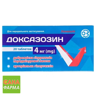 Доброякісна гіперплазія передміхурової залози. Рекомендована початкова доза доксазозину становить 1 мг 1 раз на добу, щоб звести до мінімуму ризик розвитку ортостатичної артеріальної гіпотензії та/або синкопе. Залежно від індивідуальних особливостей уродинаміки пацієнта та симптомів ДГПЗ дозу можна підвищити до 2 мг, потім до 4 мг і до максимальної рекомендованої дози - 8 мг. Рекомендований інтервал підбору дози становить 1-2 тижні. Звичайна рекомендована доза препарату становить 2-4 мг на добу.