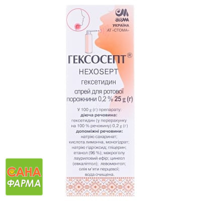 ГЕКСОСЕПТ® спрей є засобом для місцевого застосування у порожнині рота.
