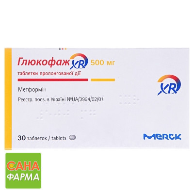 Глюкофаж XR, табл. пролонг. 500 мг, №30