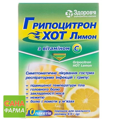 Гриппоцитрон хот лимон, пор. 4 г пакет, №10