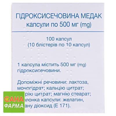 діюча речовина: гідроксикарбаміду (гідроксисечовини);
