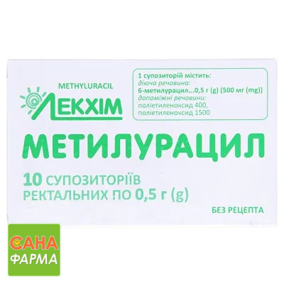 метилурацил (2,4 — диоксо-6 — метил-1,2,3,4 — тетрагидропиримидин) оказывает анаболическое действие. Ускоряет процессы регенерации, заживление ран, стимулирует клеточное и гуморальное звенья иммунитета, обладает противовоспалительным эффектом. Специфическим свойством препарата является стимуляция лейкопоэза.