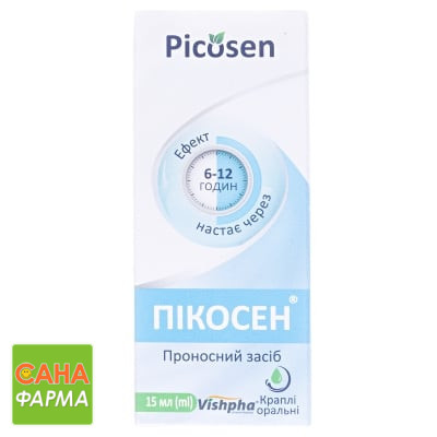 ПІКОСЕН® - комбінований контактний проносний засіб. Натрію пікосульфат є проносним засобом місцевої дії триарилметанової групи, який після бактеріального розщеплення у товстій кишці стимулює її слизову оболонку, прискорюючи перистальтику, сприяє кумуляції води та електролітів у просвіті товстої кишки. Результатом цього є стимуляція дефекації, зменшення часу транзиту і пом'якшення калу.
