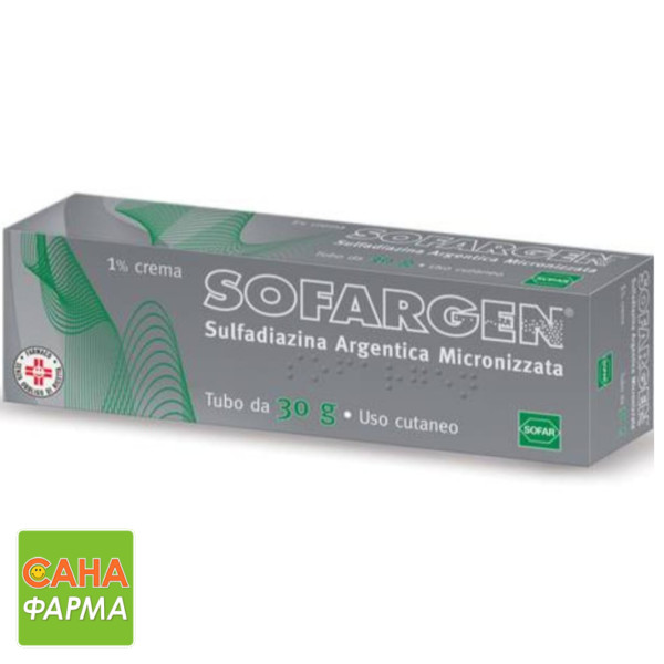 Софарген - антибіотик для місцевого застосування, показаний: при профілактиці та лікуванні бактеріальних інфекцій, що розвиваються при опіках, що вразили більшу або меншу кількість шарів інфекції, що уразило шкірні покриви (опіки 2 та 3 ступеня). До дії сульфадіазинового радикала і виявляє бактерицидну дію з широким спектром дії, завдяки наявності Софаргену містить активну речовину сульфадіазин срібла і відноситься до групи продуктів, званих сульфаніламідами. тривала нерухомість (пролежні); Сульфадіазин срібла - сульфаніламідний антибіотик, здатний блокувати механізми розмноження бактерій завдяки іону срібла.
