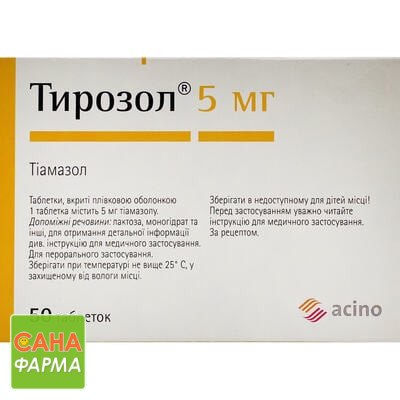 - підтримуюча доза препарату Тирозол® - по 5-20 мг на добу у комбінації з левотироксином для профілактики гіпотиреозу;