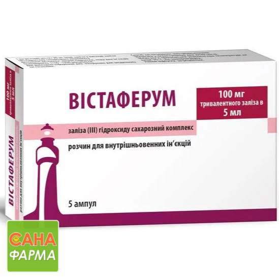 ВІСТАФЕРУМ показаний пацієнтам, яким не можуть бути призначені пероральні препарати заліза у зв'язку з їх непереносимістю, неефективністю або наявністю захворювань шлунково-кишкового тракту. Не слід одночасно застосовувати ВІСТАФЕРУМ із залізовмісними пероральними засобами, оскільки абсорбція заліза, застосовуваного всередину, знижується. Тому пероральне лікування препаратами заліза потрібно починати не раніше ніж через 5 днів після останньої ін'єкції препарату.