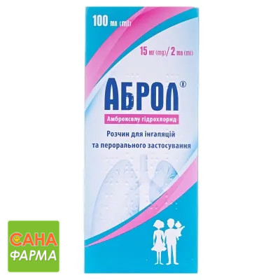 Аброл, розчин д/інг. та перор. заст. 15 мг/2 мл по 100 мл у флак. з шпр.-дозат.