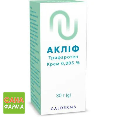 Акліф показаний для лікування звичайних вугрів (Асne vulgaris) на обличчі та/або тулубі у пацієнтів віком від 12 років за наявності численних комедонів, папул і пустул.