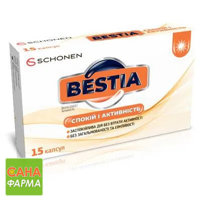 Бестіа Спокій і активність/Bestia Calm and Active рекомендується як дієтична добавка до раціону харчування з метою забезпечення фізіологічного функціонування нервових клітин. Має сприятливий вплив на мозкову діяльність.