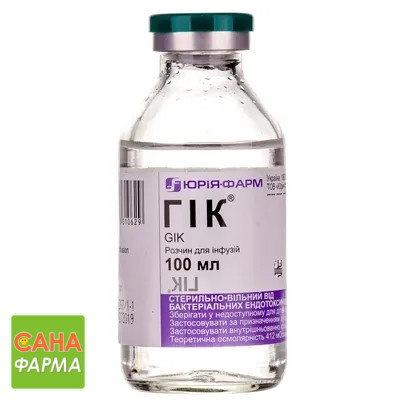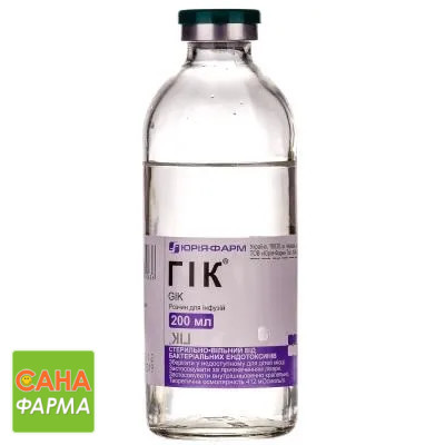 Щоб запобігти виникненню гіпоосмолярності плазми, розчин ГІК® можна комбінувати із введенням ізотонічного розчину натрію хлориду.