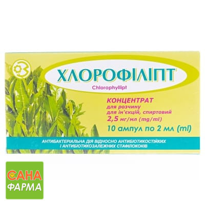 Хлорофіліпт, конц. д/ін. 2,5 мг/мл амп. 2 мл, №10
