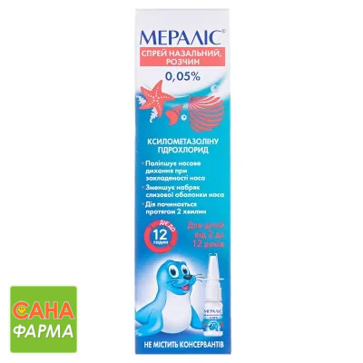 Мераліс® Адванс, 0,05 % спрей назальний, призначають дітям віком від 2 до 12 років по 1 впорскуванню у кожен носовий хід 1-2 рази на добу.